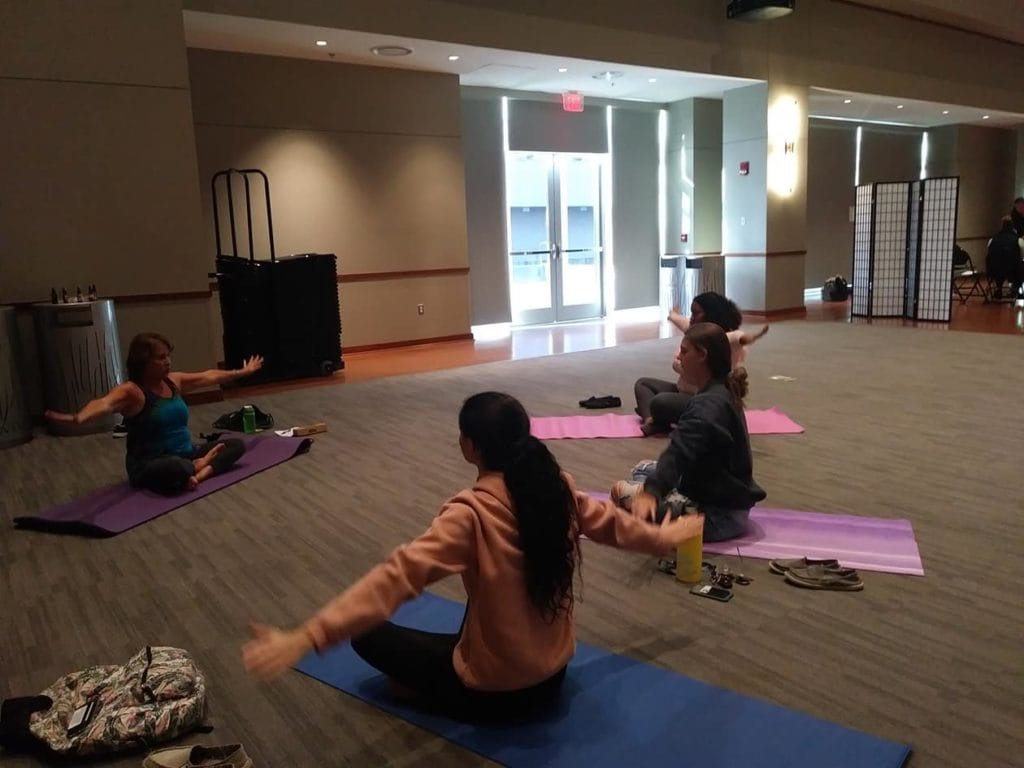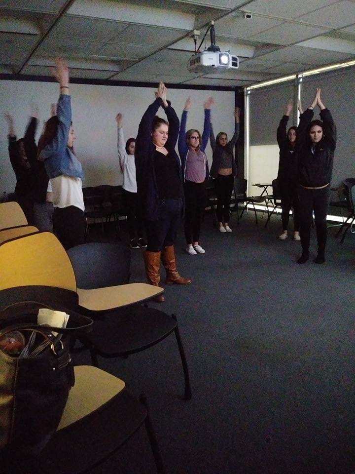 The event for that fall was successful, so we looked to see how we could fit it into our disordered eating awareness and prevention events for the spring. We made the event fit into disordered eating awareness by switching out DBT and having a mindful eating demonstration in its place. In addition to mindful eating, we held a rotation on creative self expression, meditation, and yoga.