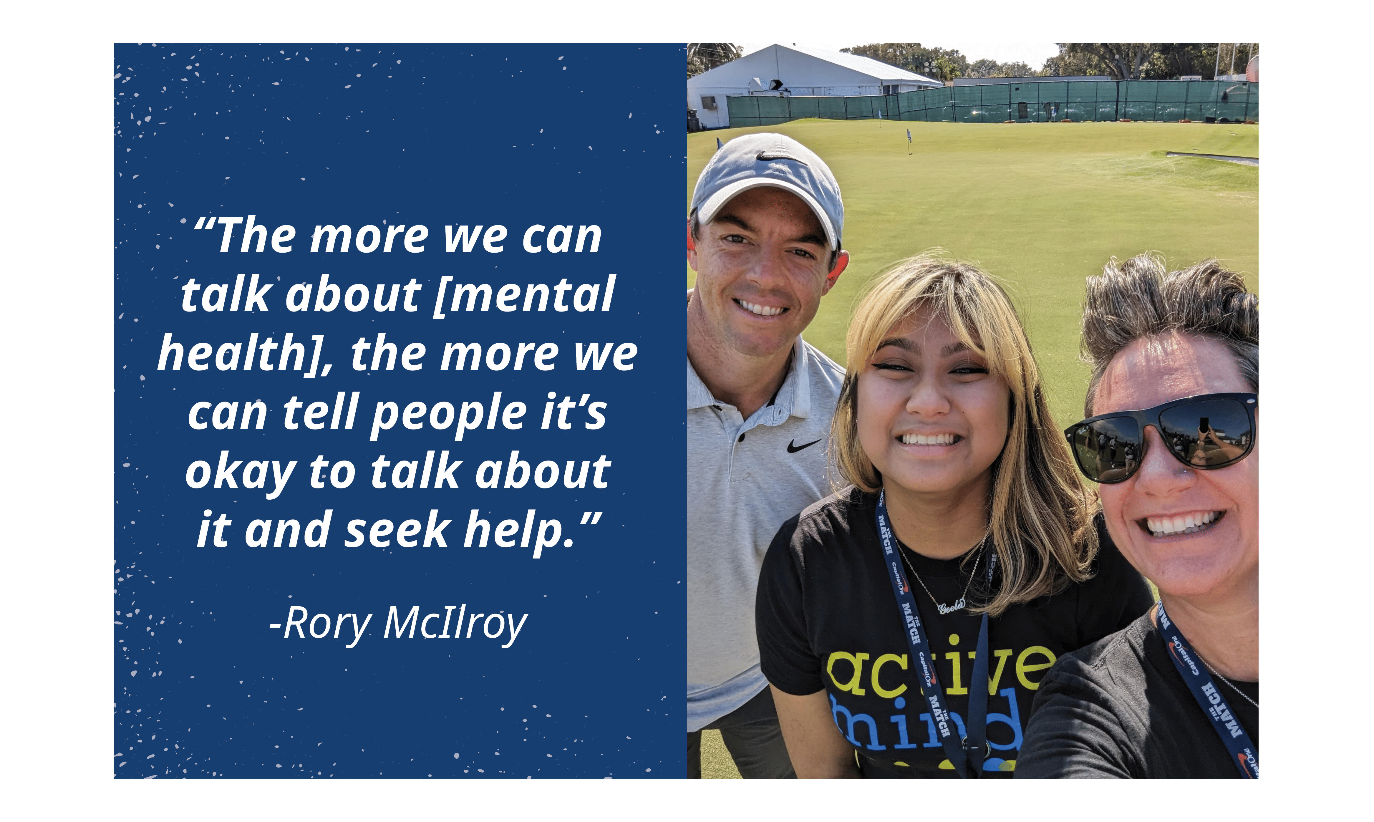 I’ll be honest: talking about mental health and Active Minds with Rory McIlroy was not on my 2022 bingo card. But, that’s where I spent this weekend, as a representative of Active Minds, sharing their life-saving mission on national television next to some of the sports’ greatest stars.