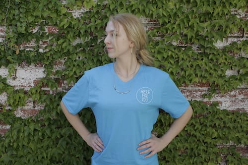 We heard from a lot of folks who wanted to sport the words “Here For You” on a t-shirt, so now is your chance to snag this bright blue v-neck! Buy one for yourself or gift one to a friend who’s always been there for you.