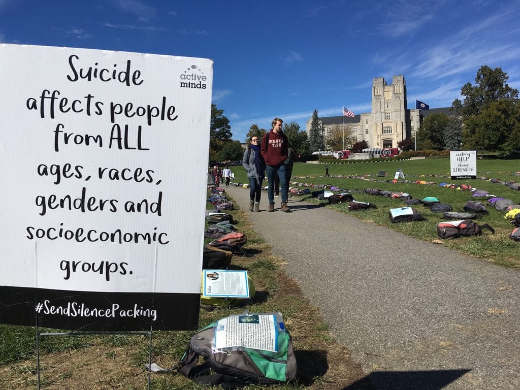 We began week six of Send Silence Packing by sledding a bit south to visit the enriched culture of Virginia Tech. This frigid, icy Monday morning was quickly melted by the orange and maroon warmth of chapter leaders Emily and Maggie, as their goal of defrosting mental health stigma sent flurries of Hokies to the Drillfield backpack display. With Taylan handing flyers out like candy canes, and Likhitha snapping breathtaking photos, the entire Virginia Tech chapter made it crystal clear there would be No Hokie Left Behind on this day.