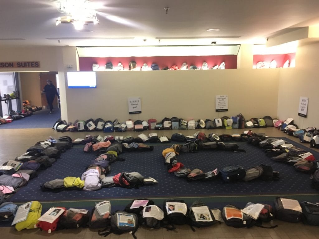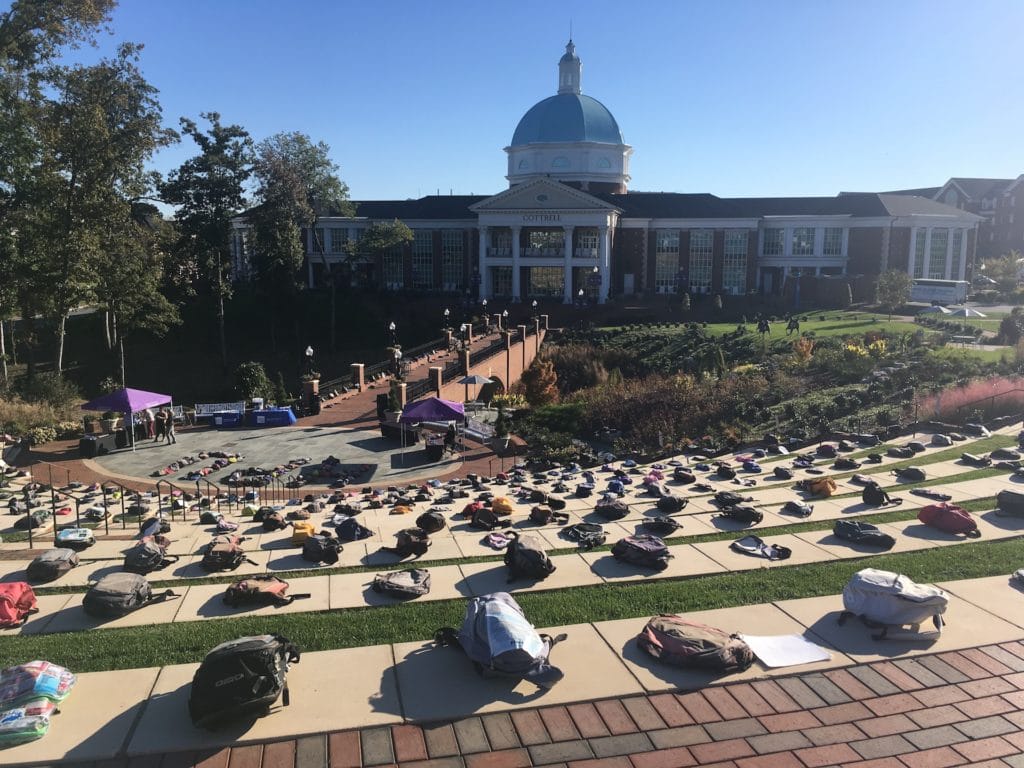 Our second stop of the week came at High Point University in North Carolina. While being known as the home furnishing capital of the world, there was absolutely no vanity among the High Point Counseling staff, led by Tiffany and Frank. This particular display proved to be extraordinary, as our backpacks glowed brighter than a chandelier throughout the entire Cottrell Amphitheater. This stunning, outdoor visual provided even greater depth towards never forgetting the mission behind Send Silence Packing, as we remember all of the young, vibrant college students we wish were still here, while providing current students with every resource possible to know that suicide is preventable.