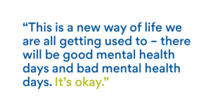 Meera: I honestly think that it’s a “treat each day as it comes” situation. I personally have days where I can’t get out of bed, don’t eat anything, or can’t even bring myself to shower. This is valid! We are all experiencing what living through a pandemic is for the first time, and that’s important to keep in mind. This is a new way of life we are all getting used to – there will be good mental health days and bad mental health days. It’s okay.