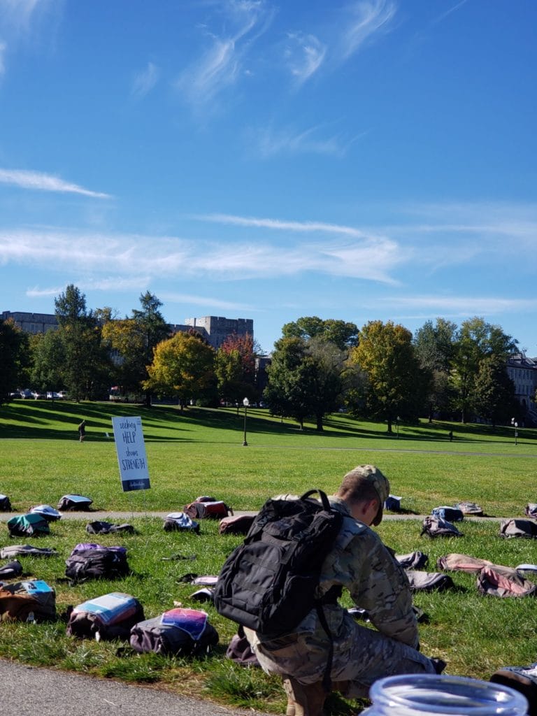 Many of the backpacks contain personal stories of those who lost the fight, submitted by family and friends. I carry hundreds of faces with me, every second of every day. At times, the weight of the work can be overbearing, yet I see their faces and they push me forward. Donating a backpack can be a healing mechanism for many and a way to let their loved one live on. We have had a number of donations this year and a few in which the family attended. At Robert Morris University, parents came to donate their sons’ backpack. They hung out all day and we talked like old friends. We even discussed ways to collaborate throughout this movement. A memorial service was held in which his friend sang ‘Hallujah’ and a song he wrote himself on overcoming the darkness. I found myself fighting back tears, but I also felt an overwhelming sense of hope as the day went on. I’ve never before experienced so much kindness- so many people coming together and strangers having each other’s backs.