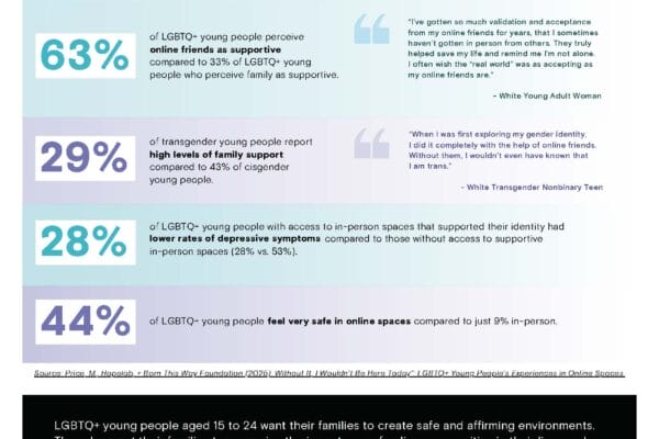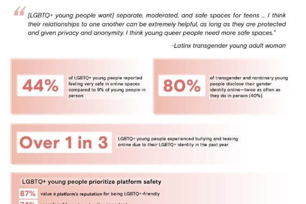 This guide provides key statistics from our research on LGBTQ+ young people’s experiences in online spaces, actionable strategies from focus groups, and key takeaways.