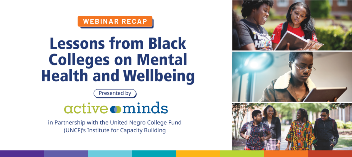 “You can’t afford to not pay attention to what’s going on with student mental health.” That sentiment has inspired Active Minds’ work for nearly two decades, including the recent release of our report “Lessons from Black Colleges on Mental Health and Wellbeing.” Created by Active Minds and the United Negro College Fund (UNCF), this report provides practical strategies that HBCUs can utilize to better address their campus’s student needs and create an equitable mental health culture for all. This week, Active Minds joined four panelists from various Historically Black Colleges and Universities (HBCUs) to discuss strategies for encouraging student wellbeing, informed by the findings of the report.